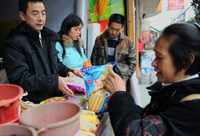11日,宣恩县农民在购买春耕生产物资。当日是农历正月初九,俗称”上九日”。在恩施土家族苗族自治州民间原有在”上九日”烧香祭祀请天神下凡问年成、放鞭炮送年的习俗。如今这些习俗逐渐淡化,但农民们过了”上九日”即年已过完的意识仍然存在,之后便用全部精力备战春耕生产。本报视界网宋文摄