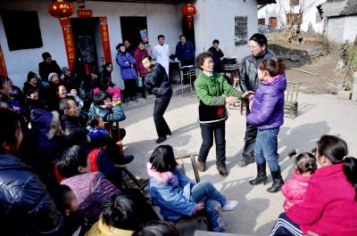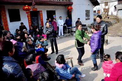 ”法制文化套餐”进农户2月11日,恩施市红土乡红土溪村一农户院坝中乡业余法制宣传队正表演文艺节目。近几来,该乡培养既热爱法制宣传工作又有一定文艺根底和法律知识的人当领头人,吸收爱好者参与,组建业余法制宣传队。通过”文艺节目+法制讲座”的形式,以农村生活和法律知识为载体,以群众喜闻乐见的方式,自编自导自演文艺节目,利用农闲时节进村入户巡回演出,为全乡广大群众送上了丰富的”法制文化套餐”。使老百姓在潜移默化中受到教育,有效遏制了赌博、酗酒、聚众打架等现象发生,为经济发展营造了良好的法制氛围。(视界网彭绍峰摄)红土乡政府13329820218