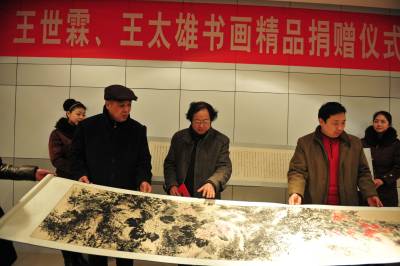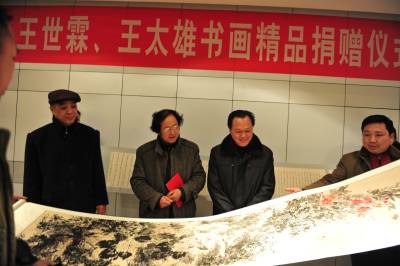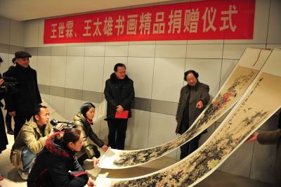 2月12日,王世霖、王太雄将自己创作的11件精品书画作品捐赠给市博物馆收藏。王世霖、王太雄是襄阳地区的书画名家,善书善画,能文能诗,在追求书画艺术的历程中,痴迷于传统,又陶醉于变革创新,逐渐形成了丰富多彩的艺术风格。此次捐赠的书画作品系”二王”书展中创作的精品,《前后出师表》、《文天祥正气歌》及《春夏秋冬》四条屏、《放鹤》对联等,都具有较高的艺术观赏价值,不仅进一步丰富了博物馆馆藏内容,对于研究本地特色的文化艺术提供了宝贵的资料。襄阳是一个历史文化浓厚的书画大市,书画名家代出,经过半个多世纪的发展,襄阳市博物馆现收藏书画作品600多件(套),墓志碑刻拓片三千多份。其中北魏张黑女及元怀、元晖、元广等元氏家族墓志铭,唐武周时期宰相张柬之的家族墓志铭等;单懋谦、王万芳、汤金钊、杨守敬、张问陶、吴庆焘等书画作品,对研究本地区历史、及对书画艺术的提供了重要参考价值。