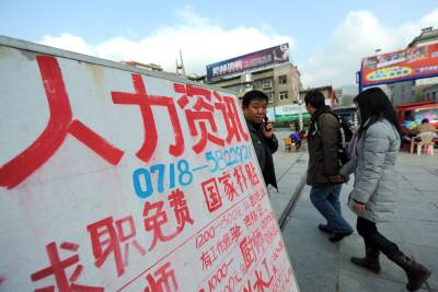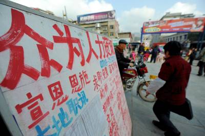 13日,宣恩县一广场门前一劳务机构”求职免费、国家补贴”的牌子十分醒目。据当地劳动部门介绍,为推动农民工就业,特别是鼓励农民工在本地就业,劳动就业部门将对中介机构给予经济补偿,而无需求职者自费求职。本报视界网宋文摄