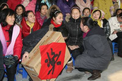员工获奖笑开颜——摄于湖北金福祥纺织有限公司2010年度总结表彰大会上(赵云福摄)