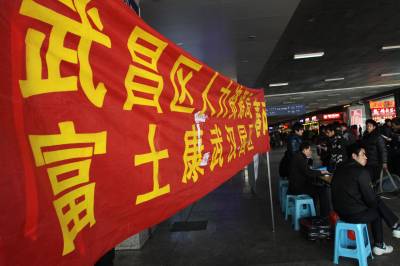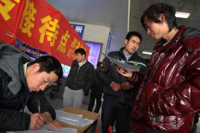 武汉:应对用工荒 武汉富士康车站摆摊招工