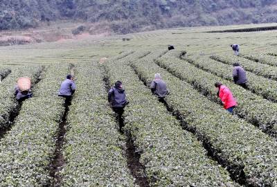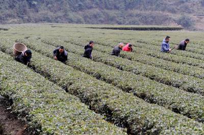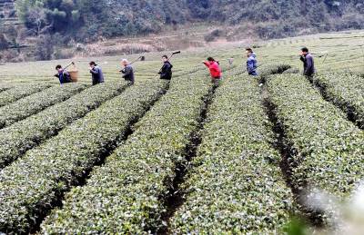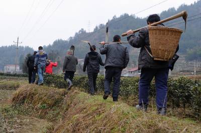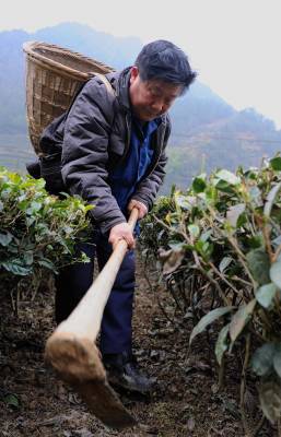 14日,宣恩县椒园镇老寨溪村农民曾召碧邀请邻居帮忙进行菜园春管。宣恩县拥有农业标准化生产茶叶基地近10万亩,其中5万余亩通过绿色食品认证或欧盟有机食品认证,每年向欧盟各国出口有机茶达600吨以上。春节刚过,农民纷纷对茶园进行松土、施肥,确保春茶增产,茶农增收。本报视界网宋文摄