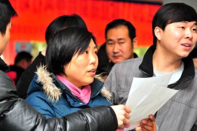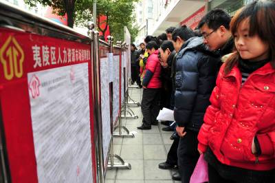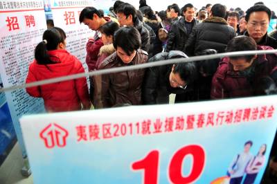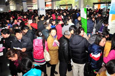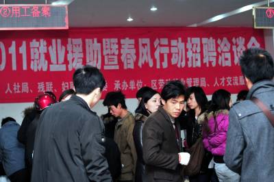 2011年2月14日,在湖北省宜昌市夷陵区”2011年就业援助月暨春风行动招聘洽谈会”上,3000多名求职者在用人单位提供的5000多个就业岗位中挑选适合自己的工作。 今年,为帮助更多返乡农民工以及需要就业的人群实现就业,湖北宜昌公共就业服务机构除举行大型的招聘会外,同时开展”天天招聘会”活动,做到就业市场天天开、岗位时时有。 据悉,2-3月份,宜昌举办的招聘会将达到50余场,提供的就业岗位数将达到10万个以上,所招聘的工作大多集中在电工、钳工、普工、焊工、服务员、营业员、营销员、保洁员等一线工作岗位。本报视界网张国荣摄