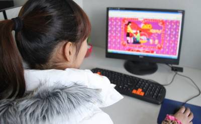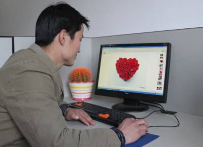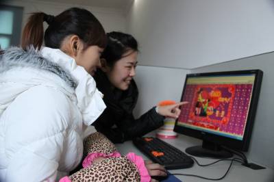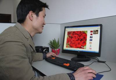 2011年2月14日,湖北省十堰市郧县一名男青年正通过网络向异地情侣传达祝福。情人节来临,湖北省十堰市郧县许多男女青年不在通过送花、送饰品表达祝福,而是通过网络传递爱情,此举既低碳又时尚。
