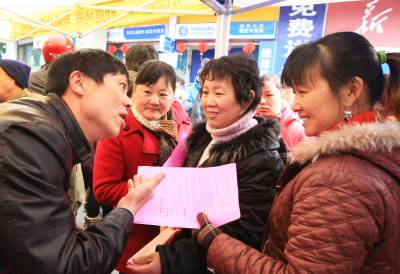 ”春风行动”招聘会在新洲2月15日,由武汉市及新洲区劳动部门联合举办的”春风行动”招聘会在邾城大街举行。来自武汉及周边72家企业进场招聘农民工,提供就业岗位2670个,现场达成求职意向1426人,录取453人。招聘会上相关部门还开展了职业指导、求职登记、政策咨询、创业培训、小额担保贷款、社会保险等多项服务。邱新明摄单位及地址:中共武汉市新洲区委宣传部邮编:430400电话:13207146140
