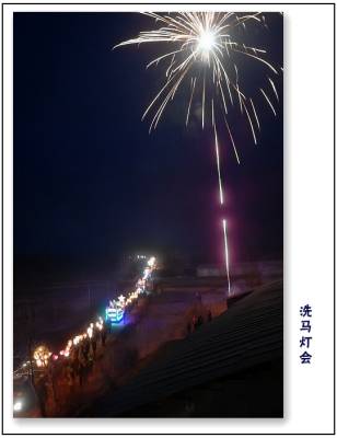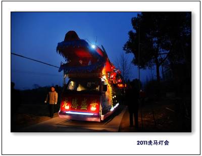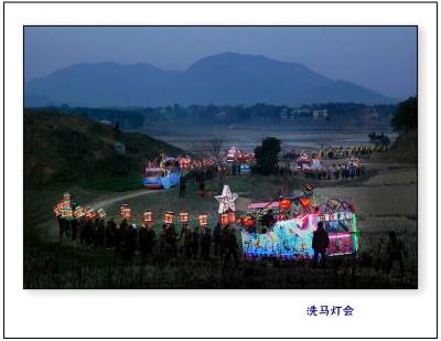 洗马镇位于湖北省浠水县,洗马龙灯会历史悠久,是浠蕲二县农民自发组织的大型民间艺术活动,以灯会的形式祈求国泰民安,风调雨顺、家家户户平平安安。洗马龙灯会与众来同,龙则是龙,灯则是灯,玩起来灯在前,龙是后。洗马龙有胡坳老龙公、圻阳二龙公、鲍家三龙公、孔龙、何叶二畈龙之说,以胡坳老龙最为神灵,是洗马群龙之首。它的来历有一段神秘的传说。不知是何许年间,江西一带瘟疫暴虐,疾病横行,人们背井离乡,其中有一支人就来到了现在的洗马镇,并在此安居乐业,传延后代。所以有了”江西老表”之说,更有”江西桥”地名为证。刚到时,新地方虽说没有瘟疫,但毕竟是荒芜之地,猛兽出没,干旱与洪灾也时常发生,人们便生思念江西故乡之意,便委托裴姓和肖姓师徒二人回去看看。他们是篾匠,到江西后一边从事篾技,一边寻访故里。一天傍晚,他俩经过长途跋涉,故乡”筷子巷”就在眼前时,却见火光冲天,空无一人的故宅正被熊熊大火吞噬,师徒俩抱头痛哭,只得抽身回转。可当他们回头再看一眼昔日的故里时,熊熊大火已然熄灭,却见一道霞光冲天,故里上空金光闪闪,霞光万道。师徒俩惊异地跑回去看个究竟,却见藏放游龙的楼阁在大火后竟然完好无损,霞光就是从阁内透出。师徒俩爬上阁楼时,原来用竹篾扎成的花龙也已燃成灰烬,只剩下龙头和龙尾两只龙箍,虽是竹篾的却闪闪发光,辉煌夺目,天上的光芒就是它们发出的。师徒俩奇异之极,诚惶诚恐,小心翼翼地将龙箍包好,沿原路返回。一日来到江边,登上渡船行至江心,瞬时间,本来晴空万里的天空已乌云密布,接着狂风大作,山摇地动,江中更是巨浪滔天,许多渡船和渔舟被巨浪掀翻,但师徒俩所坐的渡船却毫发无恙,渡船所在的江面也风平浪静,其它的船纷纷趋至,也确保平安,又生出一股风来,直将渡船推至江对面。上岸后,师徒俩认定是背上的龙箍起了定海神针的作用,才保佑了人们安然无恙。回家后师傅分得龙头箍,徒弟分得龙尾箍,并将经历的奇事告知人们,人们便以家族修建龙王庙宇,以神奇的龙箍扎游龙,徒弟的肖姓家族建了二龙公庙,扎的龙是二龙公;裴姓因为门户较少,便将龙头龙箍转赠给女儿亲家胡氏家族,胡氏修建了胡坳老龙庙,扎的龙是大龙公,裴氏成了其娘家,也就有了现在每年正月初四胡坳老龙出窝首先要到它的娘家裴湾拜年之惯例。龙王庙修建后,果然是神灵有佑,猛兽不再伤人,洪水不再泛滥,旱魔也了无影踪,群龙慕名而至,真是群龙聚首,一方土地更是年年风调雨顺,人们有个三病两痛的只要到龙王庙里求上一帖庙宇旁边长的草、菜和虫子什么的仙药,就能病痛全除!每逢春节,人们就抬着能工巧匠扎的彩龙,走村串户,为千家万户送喜赐福,相传只要是彩龙到过的家院,那年就会家景和美,六畜兴旺,百病不侵,硕大龙头上五颜六色的胡须人们求了去圈在小孩妇女的手上作为手饰,还能驱鬼避邪!从此便有了正月十三的鲍家三龙,十四孔龙、十五何叶灯、十六老龙游灯走村串户的风俗。因为要走的人家多了远了,游龙往往要到深夜,于是便出现了为龙照路的彩灯,也就是流传到现在的龙灯花灯会,仍然沿袭了走村串户的惯例!时过景迁,游龙的迷信色彩逐渐淡薄,游龙玩灯成为春节文化娱乐,歌颂盛世的载体!自从改革开放后,洗马镇的游龙和彩灯活动是年年不断,并且日新月异,彩灯从往年的篾制纸糊、点蜡烛、人抬着走转变为现在的汽车摩托车代步、发电机照明、彩纸霓虹灯装饰,灯会也成了竹篾扎制剪纸创意技艺竞比、广告商机刊发、和谐政策宣传、感谢党恩情、歌颂祖国盛世盛事、欢度美好日子的载体!(文:周本金)
