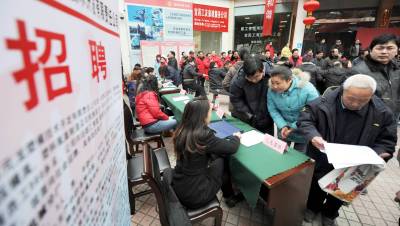 2月16日,湖北省宜昌市总工会举办的返乡农民工专场招聘会暨农民工闹元宵游园会,2000多条灯谜迎风飘扬,4000多个岗位等待应聘。来自宜昌各个战线的数千名包括农民工在内的求职者欢欢喜喜闹元宵,开开心心找工作。