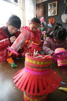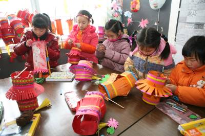 2月15日,湖北省襄阳阳光未来学校组织学生开展”自制灯笼、感受元宵”主题课外兴趣活动,小孩们利用一些废旧纸张等材料,制作各式低碳元宵灯笼,让他们从中感受和传承中国元宵节传统文化内涵。