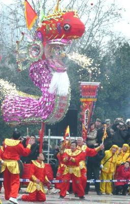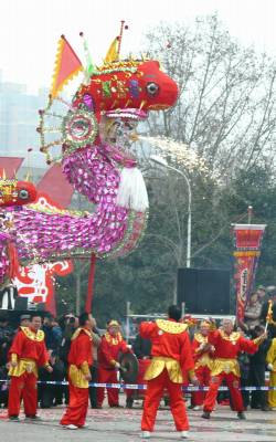 2月15日(正月十三),在汉口江滩举行的武汉市第十七届迎春舞龙大赛和第八届锣鼓比赛上,来自该市汉阳区的高龙展绝技闹元宵,现场数千观众看后惊叹不止,拍手叫绝。据介绍,汉阳高龙起源于唐代,距今年已有1300多年的历史,得到了传承和发扬。目前以湖北省武汉市汉阳区永丰江堤两街的高龙最为有名。汉阳高龙闻名全国,曾多次获得全国舞龙大赛金奖。2010年,武汉高龙赴台民间表演艺术团,参与大陆和台湾元宵节互动节目,在北台市等地向台湾同胞集中展示这一国家级非物质文化遗产,让台湾同胞大饱眼福,备受震撼。高龙属于竖式舞法,高龙重量一般在50斤以上,有的甚至上百斤。高龙的托、举、扛、顶、扫、抖和口衔齿托的神功绝技,其肩扛、肘托、头顶等玩法技巧甚高。舞高龙场面宏大、气势壮观,深受广大群众欢迎。