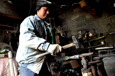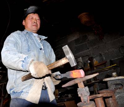 铁匠铺修理农具迎春耕2月16日,恩施市红土乡李祖国在铁匠铺里为农民赶制农具。 据了解,由于近来一段时间农产品价格走高,农民种地热情也增高。今年春耕,不仅李祖国的铁匠铺子生意好,附近其他几家的铁匠铺生意都很不错。据李祖国介绍,春耕临近,当地农民将用坏的镰刀、镐锄、锄头等农具送来重新回炉、淬火、打磨。镰、镐、锄等农具是当地山区农民主要劳动工具,他的铁匠铺平均每天要打造50多件农具,修补30余件农具。(视界网彭绍峰摄)红土乡政府13329820218