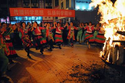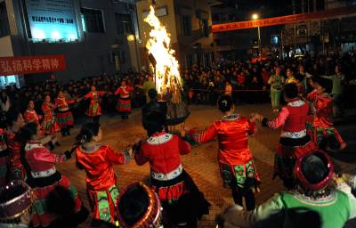 16日晚,宣恩县科技部门与当地民间艺术团体一道举办广场”科普篝火会”迎接元宵节,市民们纷纷参与其中欢庆节日。当天白天,科技部门与民间艺术团体一道,开展送科技进社区活动。本报视界网宋文摄