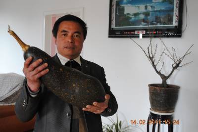 图文:”南瓜”太逼真”过年你们猛打牙祭,可能都吃伤了,我给大家搬个南瓜来解一下油!”14日下午,郧西县工业园区管委会干部李秀升笑呵呵地向来访者展示他采摘的南瓜。这个”南瓜”颜色呈深绿色,尾部连着一个小小的瓜蒂,是家里一堆南瓜里其中一个,表面有淡黄色的纹理。一个客人用手抱南瓜大吃一惊,发觉它冷冰冰的,还很沉重,这时才发觉原来这”南瓜”原来是石头。据介绍,这些”南瓜石头”属于纯天然形成,没有经过人工打磨,石头外形、色泽酷似南瓜。(本报视界网徐雁初摄)