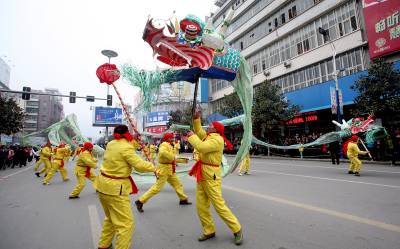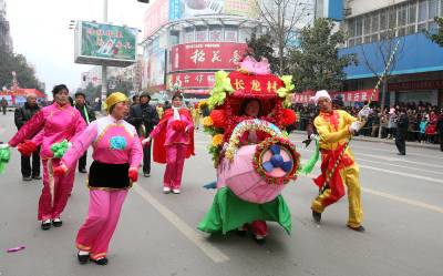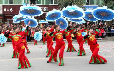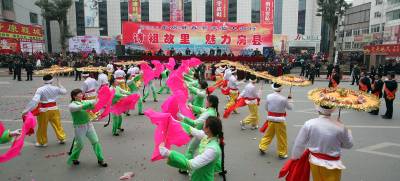 爆竹声声辞旧岁,欢歌劲舞闹新春。 2月15日﹙农历正月十三﹚,山城房县锣鼓喧天,热闹非凡。该县春节文化活动的重头戏—— —一年一度的正月十三新春民间文艺大游行活动如期举行。整个房县城沉浸在万众欢腾、和谐吉祥的氛围中。当天一大早,满怀期待的群众从四面八方涌向县城,把主要街道挤得水泄不通。上午九时整,集合在唐城广场、由6000多名干部群众组成的54支文艺表演队伍陆续出发,由西向东沿主要街道载歌载舞。舞龙灯、划旱船、扭秧歌、腰鼓队......各种传统民俗表演,令广大市民欢乐开怀。当游行队伍中最为抢眼的女子威风锣鼓队行至十字街时,房县县委、县政府的主要领导也情不自禁地参与其中。今年的新春文艺大游行,以”诗祖故里·魅力房县”为主题,突出了诗经文化的特色。在游行队伍中,百名学生吟诵诗经尤其引人注目,这对该县正在积极筹办的第二届诗经文化节和打造全国诗经文化城起到了很好的宣传造势作用。当晚,该县在唐城广场举办”上元灯会”,成千上万的市民被一个个灯谜所吸引。与此同时,激情四射的舞火龙表演也在上演。据史志记载,房县正月十三上街闹春的习俗起源于唐代。改革开放以来,随着全县经济社会的不断发展,该县把这一习俗传承发扬,通过政府主导,大众参与,该活动十几年来从未间断,不仅成为全县人民欢乐的盛会,更成为房县的一大文化品牌,去年还被央视等媒体报道,省文化厅、省文联的领导和专家也专程来房县进行观摩指导。展示诗祖故里风采,畅想房陵美好未来。在欢声笑语中,房县人民迈向了充满希冀的新一年。