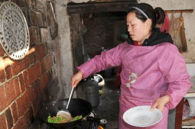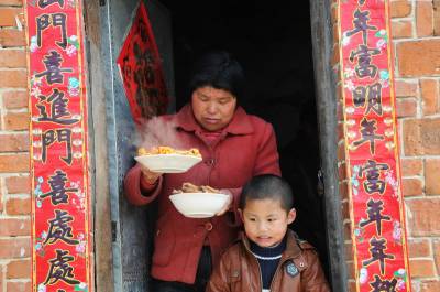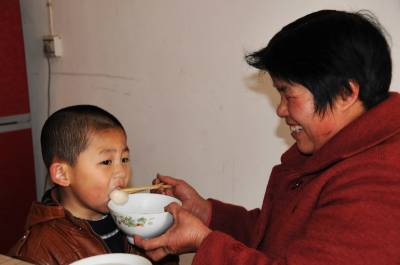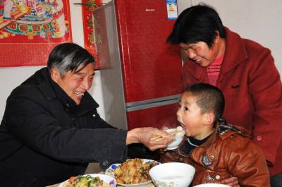 2月17日是元霄节,我们来到南水北调中线工程水源区湖北省郧县杨溪镇刘家沟村,与今年后靠内安移民在老屋同过最后一次元霄节,在四代同堂的辛义有家感受后靠内安移民元霄节的抉乐。来到老辛家,老辛与妻子卜文荣正在忙着蒸菜,于是我们与辛义有81岁的老父亲库区职业中学退休的老教师辛绍周聊起了家常,他说:”解放前农村过元霄节都吃不起元霄,编的顺口溜是‘早晨梆梆响,中午靠山庄,黑了改个顿,还是红薯汤’。”意思是说农家早晨做早饭在莱板上垛红薯垛的梆梆响,中午将红薯靠齐放在锅里煮红薯,晚上想改个顿但还是红薯汤,一天三顿全吃红薯根本吃不到元霄。解放后至上世纪九十年代农村生活好了,每家每户元霄节自已打米粉自己团元霄。到如今家家户户已不在团元霄了,改为去超市里买袋装元霄了。生活变化太大了,这都是党的政策好。正聊着老辛的儿媳妇与孙子及妹妹都回来了,儿媳妇张霞忙着进厨房做莱,很快一桌酒席摆在了堂屋里,老辛在门前点响了1000响鞭炮,一家人围在桌前吃起了酒席。老辛妻子卜文荣又到厨房里煮了一锅元霄,端上桌来4岁孙子辛虹争着要吃元霄,老太爷辛绍周端起碗来给曾孙喂元霄,一家人围在桌前某乐融融。临走辛义有一在邀请我们明年元霄节到他家新楼房里一起过元霄节,现在党的移民政策好,到时搬新家时你一定来,在我家新楼房前给我家四代拍一张新的全家福照片,我们告诉他一定来。图1为81岁的辛绍周给曾孙辛虹喂元霄时的情景。图2为儿媳妇张霞忙着在厨房里做莱时的情景。图3为辛义有在门前点响了1000响鞭炮时的情景。图4为一桌莱摆在了堂屋里时的情景。图5为老辛的妻子卜文荣将煮好的元霄盛进碗里时的情景。周家山杨文华摄湖北省郧县城管大队电话13872840078邮编442500