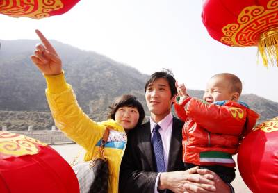 竹山县2011盏大红灯笼迎元宵 正月十五,一家三口在竹山县堵河广场观看红灯笼。当日,为期两天、悬挂2011盏红灯笼的竹山县第二届元宵灯会正式开始,现场除表演精彩的文艺节目外,还投放500个灯谜,供人们有奖竞猜。(本报视界网章磊摄)地址:竹山县交通局章磊电话:15972574118