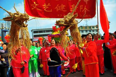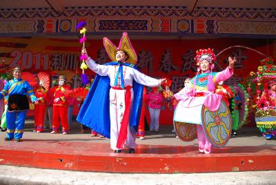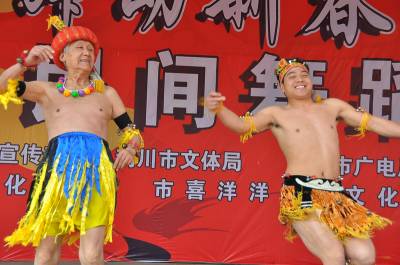 民歌民舞闹元宵2月17日,83岁的利川市国家级民间艺术大师吴修富带领弟子登台表演”肉连响”(图一)。当日,该市举办的民族民间舞蹈大赛吸引了万余名群众观看(图二),来自各乡镇的31支民间表演队的近千余名演员,尽情演绎浓厚的土、苗文民间文艺(图三、图四)。(视界网秦卫飞)