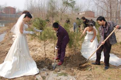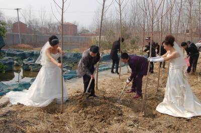 在湖北枣阳市钟爱一生婚纱影楼拍婚纱照的顾客,均可在外景基地自愿种植新婚纪念树,意为着美好的婚姻家庭需要双方的精心栽培和用心呵护,得到了前来拍摄顾客的纷纷响应。瞧:元宵节上午这两对顾客种植的多认真!本报视界网聂国乐摄