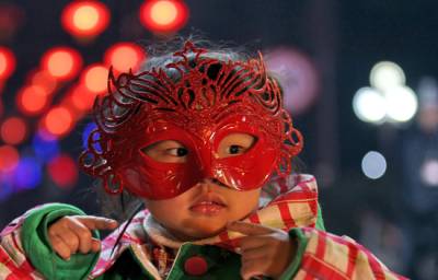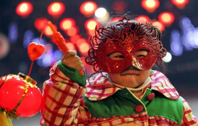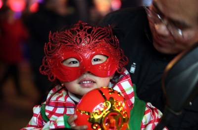 花灯俏人欢笑2月17日农历正月十五,元宵佳节,孝感人民广场上空一朵朵礼花在夜空绽放,璀璨夺目,一盏盏彩灯流光溢彩,美轮美奂,一名戴着面具的小姑娘分外可爱。舞龙灯、赏花灯,传统佳节散发着迷人的魅力。签约摄影师晏美华摄