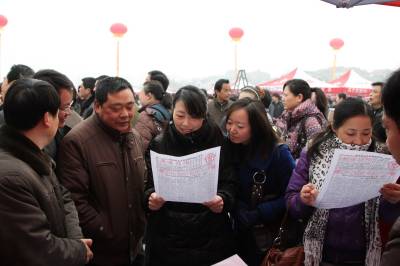 2月18日上午,几名求职者在认真阅读务工信息,寻找适合自己的岗位。当日,钟祥市2011年春季劳务交流会在体育馆广场召开,2000余名求职者闻讯而来,挑选钟祥市劳动和社会保障局精心安排的工作岗位。