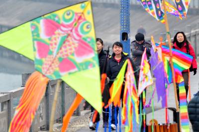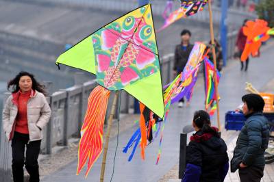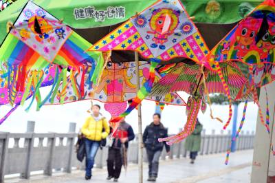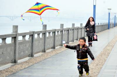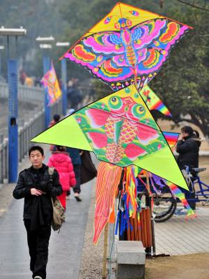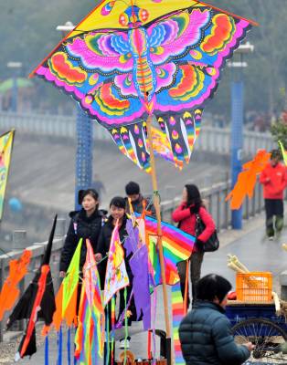 2011年2月18日,市民在湖北省宜昌市夷陵区滨河公园里游园赏景。随着春天脚步的临近,湖北宜昌市民纷纷走出家门,来到户外踏青游玩,公园里五彩鲜艳的风筝,让市民感受着春日煦暖的那份惬意。本报视界网张国荣摄