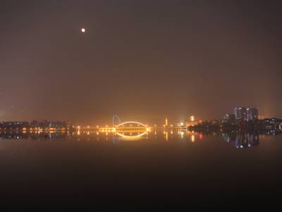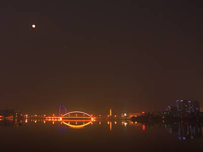 正月十五,一轮明月高悬天际,给鄂州市民增添了更浓的节日氛围。