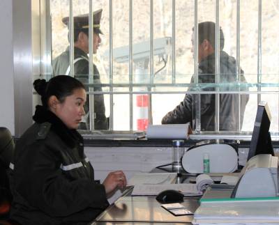 湖北省竹溪县公路局洞子沟超限超载检测站,从去年12月1日正式投入使用以来,工作人员文明执法。图为2月12日工作人员对超载者进行依法处理的镜头。地址:湖北省竹溪县公路局周元龙周泉顺摄邮编:442300电话:13886836068