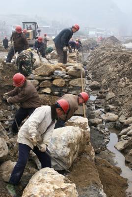 本报视界网签约摄影师颜义众:2月18日,竹溪县蒋家堰镇敖家坝生态观光农业基地内,工人正在修建道路。竹溪抢抓鄂西生态文化旅游圈建设机遇,按照”生产发展、生活宽裕、村容整洁、乡风文明、民主管理”的新农村建设指导方针,在蒋家堰镇的305省道边,离在建的”谷竹高速公路”出口仅仅3公里的敖家坝(黄石头村、洞沟河村、关垭子村),发展水产养殖、花卉盆景、设施蔬菜等为主的生态观光农业,建设成为经济快速发展、休闲宜居的生态旅游观光园。该观光园是该县最大的生态农业旅游观光园,一期规划以村庄整治、基础设施配套和产业建设为主。目前正在对500亩土地进行渠网、道路配套建设,主要产业金银花现已栽植300亩。