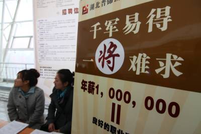 2011年2月19日,湖北省襄阳市春季招聘会,一家投资公司推出年薪百万元的岗位诚聘英才。