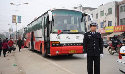节后返岗忙交警来护送18日,潜江市龙湾镇、张金镇、熊口镇1000余名”潜江裁缝”踏上深圳某企业包租的客车,重返深圳打工。市交警支队派出2辆警车,4名干警,进行全程护送。从2000年至今,潜江交警每年全程护送”潜江裁缝”奔赴深圳、福建、北京等地的服装企业打工。”潜江裁缝”是中国”十佳劳务品牌”之一,近几年来,10余万”潜江裁缝”实现年劳务收入15亿元以上。吴燕军摄