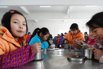 2月18日是郧县各寄宿制中小学统一开学的日子。今年春季开学,郧县教育局早安排早部署,各学校做好了新学期开学的各项准备工作,确保了新学期平安顺利的开学。(图为郧县刘洞镇九年一贯制学校的寄宿生们正开心的吃着午餐。)高超/摄