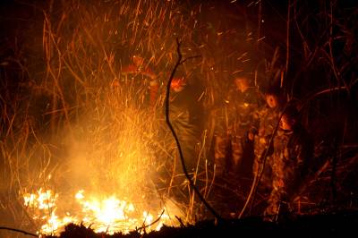 2月19日晚21时,国家电网湖北咸宁供电公司输电中心员工与村民一道奋力扑灭山火。当日18时06分,咸宁供电公司输电中心主任邵国春接到咸安区马桥镇驻点护线员凃道田报警电话,该镇吕铺村至四门楼村的茅草垴山突发山火,直接威胁着三峡电能输往华东的500千伏兴咸线Ⅱ回412#—413#铁塔和220千伏咸吴线5#—6#铁塔的安全。险情发生后,咸宁供电公司、咸安区政府迅速组织突击队奔赴现场灭火,马桥镇吕铺村、四门楼村和曾铺村一百多名村民也纷纷手拿柴刀砍隔离带、肩扛树枝扑明火。经过4小时的鏖战,山火在距500千伏兴咸线Ⅱ回412#铁塔50米处被完全扑灭,三峡输电通道安然无恙。