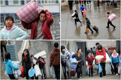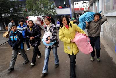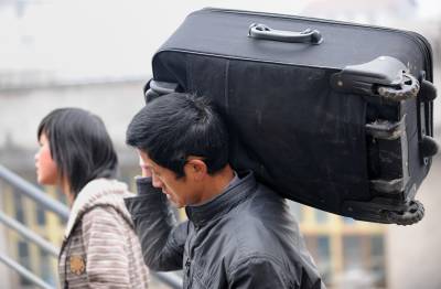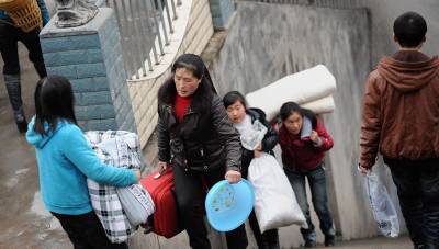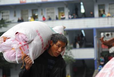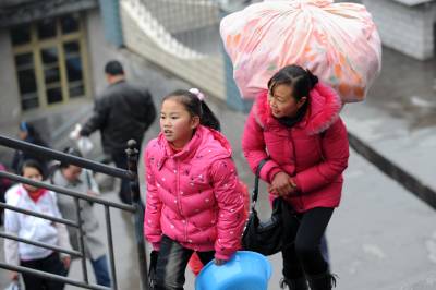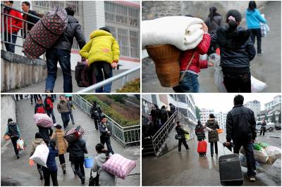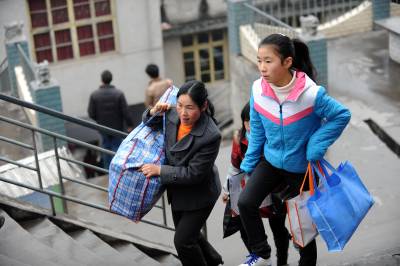 19日,在宣恩县椒园中学,家长们背着孩子的行李送孩子上学。当日是椒园中学开学的日子,许多农民工将自己的孩子送到学校,他们肩上扛的、手里拎的则是孩子们大包小包的行李。之后,他们中的一部分人将再次赴外地务工。椒园中学是一所寄宿制学校,全校2058名学生中有1000余名学生的父母常年在外务工。宣恩县每年约有7万青壮年在外务工,占全县人口总数的五分之一。本报视界网宋文摄