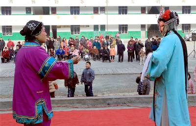 正月里来闹新春连日来,十堰各地精心组织,深入挖掘中华传统文化内涵,开展了一系列丰富多彩、健康活泼的群众文化活动,营造出欢乐和谐的节日气氛。图为该市张湾区花果街办二堰村将戏团请到村里,为村民奉上丰富多彩的戏曲节目,受到村民们的热烈欢迎。图/记者罗伟十堰晚报记者部罗伟(442000)