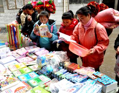 学生和家长”挑”教辅书2月20日,恩施市红土乡几位家长和学生在书店”挑”教辅书。今天是恩施市中小学2010学年第二学期报道日,学生到学校报道后就马上来到书店,来购买指定的教辅用书。同时一些家长也来帮自己的孩子挑选一两本课外读物。(视界网彭绍峰摄)红土乡政府13329820218