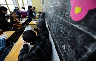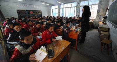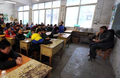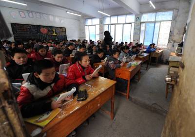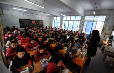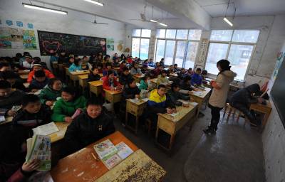 21日在宣恩县民族实验小学拍摄的一名学生把课桌摆在讲台上上课的”超级大班”。宣恩县民族实验小学拥有学生2249名,只有35个教学班级,平均每班63人,有几个班级的人数达84人,许多班级的老师不仅没有讲桌,甚至还把讲台让出一半给学生摆课桌。而杨姓校长就介绍:按照目前学校人数,需要设置48个教学班。宣恩县教育局教育股的统计数据表明,目前全县共有小学生20978人,教学班561个,平均每班学生仅37人。相关负责人就说,造成教育资源分布不均、城镇学校出现”超级大班”的主要原因是人口向城镇集中、特别是许多农村留守儿童被亲属带进城市上学,导致城镇教育资源异常紧张。目前该县正在改、扩建城镇学校,以逐步解决”超级大班”问题。本报视界网宋文摄