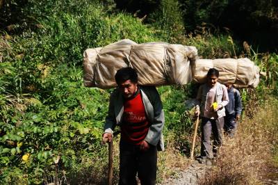 镜头记录农村交通变化”出门水泥路,招手上公交”,这是竹山农村交通现状的真实写照。近几年来,要说该县交通发展,最好、最快的就是通村水泥路建设。2004年前,竹山县的通村水泥路只有30公里,少数村通了土路,农民出行基本靠走,运输货物靠肩挑背扛,个中辛苦一言难尽。为改变这种现状,竹山县委、县政府积极谋划,抢抓机遇,在”十一五”期间掀起了建设通村水泥路的高潮。截至2010年底,全县通村水泥路里程达到2026公里,是2004年的67.5倍,全县254个行政村全部修筑了通村水泥路,通达率、通畅率、通客率由2004年的90.55%、2.2%、60%增加到100%、97.5%、90%。”十一五”期间,竹山县农民的生活大变样,从本文的五张照片可以印证。路的延伸改变了竹山的一切,也改变了老百姓的思想观念。溢水镇东川村修筑了5条总长为27公里的环村道路,交通便利带动村里特禽养殖、高科技种植等特色产业快速发展,家家户户过上了富裕的生活。深河乡秦家村依托公路建设,按照”果+蔬+牧”的发展模式,在公路沿线种植金银花1.2万亩,栽植优质核桃1200亩,培植优质茶叶3230亩,种植无公害蔬菜160亩,培育木耳、香菌等650万袋,养殖秦巴黄牛1.2万头、生猪2.1万头。如今在竹山县,像东川村、秦家村一样的事例还有很多,他们依托公路建基地、搞养殖,土地流转搞开发,生产生活大变样,农民人均纯收入也大幅提高。(本报世界网章磊摄)①2004年10月12日,笔者在竹山县柳林乡道寺坪村拍摄的农民背烤烟的照片。从照片中可以看出,农民的目光中充满了期待,他们期待着舒心的日子、美好的明天。柳林乡是竹山县出产优质烤烟的乡镇,2004年,该乡25个村基本不通公路,农民出行完全依靠肩挑背驮。②2008年7月26日,笔者在竹山县城关镇二道坊村拍摄的一幅移民新村照片。当年,竹山县各移民安置点全部通了水泥路,移民新村水泥路总里程达到357公里。③2009年10月6日,海拔1600米的竹山县柳林乡郑家坪村修通了水泥路,从此,大山里的土特产品能够非常便捷地运出山外。④2010年3月17日,笔者在竹山县城关镇高家庄村拍摄的孩子们在通村水泥路上行走的照片。金黄色的油菜花,平坦的水泥路,孩子们高兴地行走在乡间道路上,一路欢歌笑语。这年底,竹山县254个行政村全部通了水泥路。⑤2010年12月18日,竹山县麻家渡镇柿树坪村王兴东、蔡成英夫妇购回一辆私家车,幸福的笑容挂在脸上。他们说,这几年村里有十几户人家买了车,如今村村通公路,山里人家像城里人一样购买了私家车。地址:竹山县交通局章磊电话:15972574118