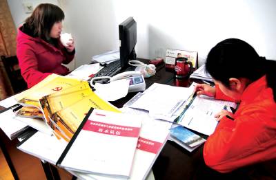 辛苦的社区干部22日,黄石市十五冶社区一名干部詹青莲一边工作一边啃馒头。由于工作太忙,她经常如此吃早餐,有时连吃早餐的时间都没有。社区干部上对街道十几个科室,下对社区一万多居民,在做好政府下达各项常规工作、阶段性工作、临时性工作、突击性工作之外,还要完成各项工作指标:如上报信息任务、报刊征订任务、社区养老保险任务、计划生育工作、清理”牛皮癣”、打扫卫生死角等等。还要”入户访千家”为居民办实事、既要对老百姓负责,更要对上级领导负责。有时周末都没有时间休息,社区干部好辛苦。黄石市黄石日报摄影部邱孝威摄电话:13807232603邮编:435002
