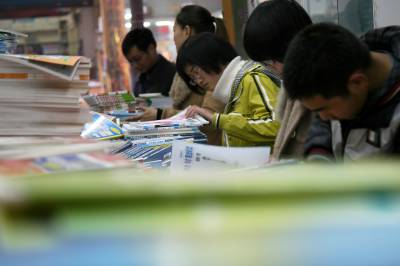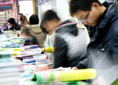 本报视界网签约摄影师颜义众:2月22日,湖北竹溪一书店内,下午放学的学生争相选购教辅资料。随着2月19日竹溪全县中小学的开学,学生或在家长带领下、或自己到书店选购教辅资料,促进教辅资料的俏销。