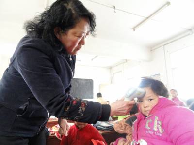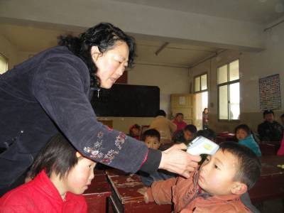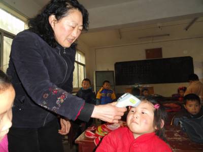 23日晨,郧县刘洞镇九年一贯制学校的孙照芝老师正在为学前班的学生们量体温做晨检。为确保学生身体健康,该校依据郧县教育局新学期伊始的”开学第一课——安全教育周”的活动安排,积极开展春季校园传染病防控工作。(郧县刘洞镇九年一贯制学校高超/摄邮编442525)