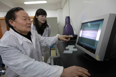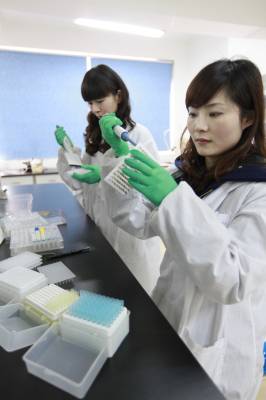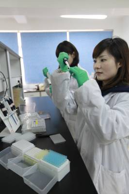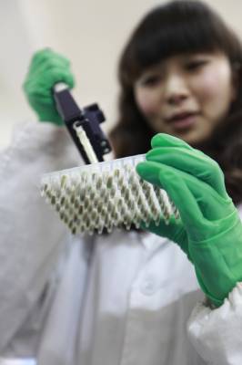 2月23日,宜昌市农技人员正在对水稻种进行DNA检测。时下,正进入春播生产的关键时期。宜昌市农业部门在全省率先引进了水稻和玉米种子DNA专用检测仪和专用检测试剂,对市场上的种子全部实行”DNA检测”,让假种子无处藏身。据了解,传统的种子鉴定需要三个月以上,周期长,成本高。而这种技术一个星期就可以完成。(本报视界网黄翔摄)