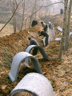新春伊始,随州市曾都区已安排农田配套设施建设资金200万元,计划建设沟渠20余千米,消除灌溉死角,确保粮食生产安全。图为洛阳镇邱畈村正在铺设输水沟渠。