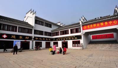 秭归县在村级着力建设”便民服务中心、说事议事中心、商务流通中心、卫生医疗中心、文化娱乐中心”等服务村民的党员群众服务中心。服务中心统一设计成具有三峡特色的白墙、青瓦、马头墙式的建筑风格,五大功能一应俱全,村干部全天候值班,使村民足不出村就能享受到一站式服务,成为村民生产、生活离不开的好场子。