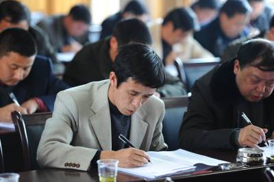 当日,保康县安监部门组织全县30多家矿山企业负责人进行了安全法律法规和管理知识考试。为强化企业主体责任落实,保康县严格执行矿山企业复工程序,年初复工前,矿山企业负责人必须参加闭卷考试,对考试达不到合格要求的,一律认定其不能胜任安全管理工作,一律不予复工。(本报视界网杨韬摄)