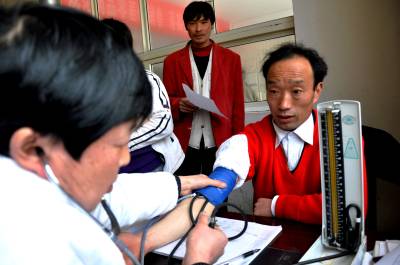 农民工有了”健康档案”2月24日,恩施市红土乡漂水岩煤矿几位农民工正在接受医务人员的测量血压等健康体检。据悉,该乡通过加强煤矿安全和给矿工定期开展免费体检活动,确保煤矿安全生产工作。组织6家煤矿的600多名农民工在乡卫生院免费进行体检,体检项目除了参照干部职工体检项目之外,还针对井下作业工人的具体情况,增加了X光检查等项目,同时为每位农民工建立了健康档案。同时,要求各工矿企业,在工人上岗前必须实行一年一次以上的健康体检。(本报视界网彭绍峰摄)红土乡政府13329820218