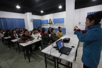 宜昌千名困难家庭妇女免费培训家政服务2月25日,困难家庭妇女参加免费技能培训。近日,宜昌市妇联开设的家政服务员培训班开班,首批30位来自城郊、县区的困难家庭妇女和下岗女职工在这里参加免费家政培训。今年宜昌市计划为1000名困难家庭妇女免费培训家政服务技能,合格后全部安排岗位就业。本报视界网黄翔摄13986769494