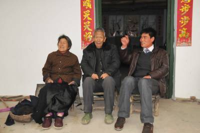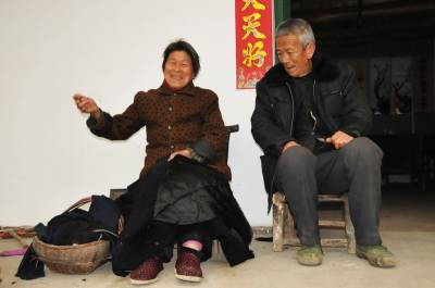 2月24日,湖北省郧县谭山镇腰庄村的高学亮,凌发荣老俩口正在新房门前干着针丝活聊着家常话。2010年7月24日该村被丹江上游冲下来的洪水淹没900多人转移上山,其中有18户村民房屋被洪水冲走。为保证这18户村民住进新房,当地政府为每户补助近7万元,个人出资6万元,每家每户建起了120多平方米的新房,春节前70多人搬进了新房。图为高学亮,凌发荣老俩口正在新房门前干着针丝活聊着家常话时的情景。周家山魏明成摄湖北省郧县城管大队电话13872840078邮编442500
