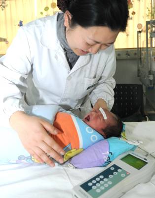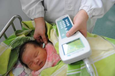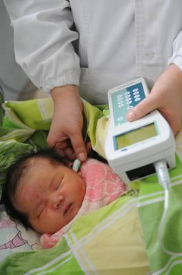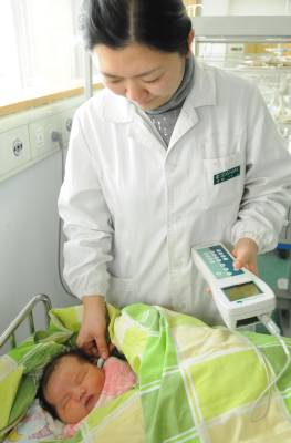 湖北宜昌:推广新生儿听力筛查任重道远”爱耳日”前夕,宜昌市中心人民医院耳鼻喉科护士正在为一名出生两天的婴儿进行听力筛查。今年3月3日是第十二次全国”爱耳日”,主题为”康复从发现开始,大力推广新生儿听力筛查”。据了解,我国现有听力残疾人2780万,其中0至6岁听障儿童约13.7万。对新生儿进行听力筛查是听障儿童早发现、早诊断、早干预的最主要手段。卫生部自2009年起在全国全面启动新生儿听力筛查工作,然而限于经济、地域差异等因素,新生儿听力筛查尚未完全普及,新生儿听力筛查工作任重道远。