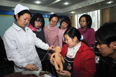 湖北宜昌:普及听力筛查,从准妈妈抓起3月3日全国”爱耳日”前夕,在宜昌市中心人民医院”孕妇学校”课堂上,一名护士正在向准妈妈模拟示范新生儿听力筛查的操作步骤。今年是第十二次全国”爱耳日”,主题为”康复从发现开始,大力推广新生儿听力筛查”。为提高听力筛查的普及率,该院将孕产妇作为宣教重点,通过”孕妇学校”、”育儿课堂”等方式宣传听力筛查的重要性和安全性,加强对听力缺陷的患儿早期干预。