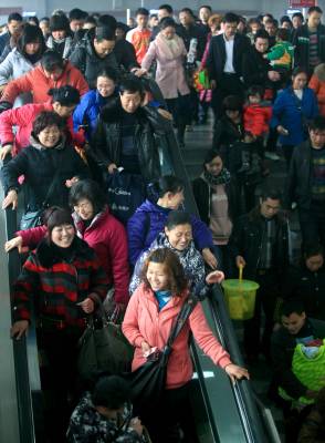 2月27日,众多旅客在恩施火车站排队乘车。当天,为期40天的春运进入最后一天。宜万铁路自2010年年底开通后,成了全州各族群众春运中出行的新选择,便宜、安全、快速的铁路线让他们的出行更加便利。据介绍,仅恩施火车站在第一个春运中迎送旅客就达20万人次。